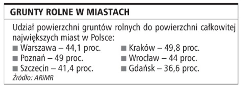 Od 1 stycznia z polskich miast znikną działki rolne, wejdzie bowiem w życie nowelizacja ustawy o ochronie gruntów rolnych i leśnych, która przewiduje, że wszystkie działki rolne położone w granicach administracyjnych miast zostaną odrolnione z mocy prawa. Problem jest doniosły. Nie każdy zdaje sobie sprawę, że terenów rolnych w dużych aglomeracjach miejskich jest tak dużo. Na przykład w Krakowie czy Poznaniu ich liczba dochodzi do 50 proc.