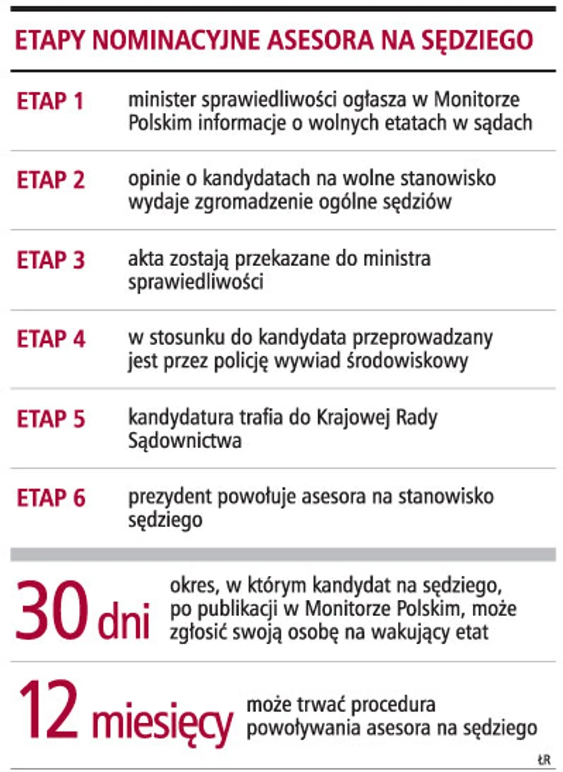 - To już nie jest ostatni dzwonek, to już jest po ostatnim dzwonku dla procedury nominacyjnej asesorów - mówi sędzia Jarema Sowiński, rzecznik prasowy Sądu Okręgowego w Poznaniu. Kandydatury wszystkich asesorów muszą zostać ocenione, zaopiniowane przez ministra sprawiedliwości, konieczne jest przeprowadzenie wywiadu policyjnego. Kolejny etap to podjęcie decyzji przez KRS w sprawie przedstawienia kandydatury prezydentowi, który powołuje asesora na sędziego.
