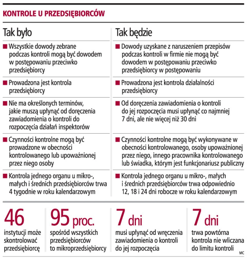 Firma musi zostać powiadomiona o zamiarze przeprowadzenia w niej inspekcji. Kontrola nie wykorzysta materiałów uzyskanych z naruszeniem prawa przeciwko przedsiębiorcy. Przedłużenie okresu przeprowadzania kontroli w firmie będzie możliwe tylko wyjątkowo.