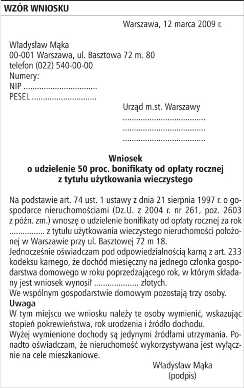 Z góry do 31 marca każdego roku kalendarzowego użytkownik wieczysty powinien bez wezwania zapłacić opłatę roczną. Na jego wniosek może zostać ustalony inny termin płatności oraz przyznana bonifikata.