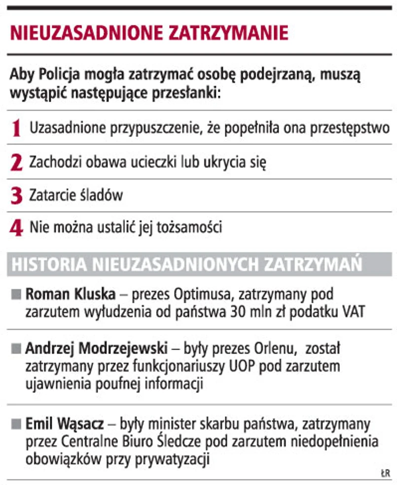 W sobotę na krakowskich Balicach policja zatrzymała prezesa Cracovii - Janusza Filipiaka. Ciąży na nim podejrzenie działania na szkodę wierzycieli krakowskiego klubu piłkarskiego. Zdaniem Trybunału Konstytucyjnego (wyrok z 5 lutego tego roku, sygn. akt K34/06), przepis pozwalający prokuratorowi zarządzać zatrzymanie i przymusowe doprowadzenie osoby podejrzanej jest niezgodny z konstytucją, gdyż nie dookreśla przesłanek uzasadniających użycie tego środka przymusu. Eksperci podkreślają ponadto, że osobę podejrzaną należy najpierw wezwać do złożenia wyjaśnień, a zatrzymać należy tylko wówczas, gdy istnieje podejrzenie, że osoba popełniła poważne przestępstwo i może utrudniać śledztwo.