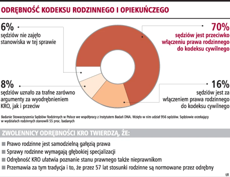 Z ankiety przeprowadzonej przez Stowarzyszenie Sędziów Sądów Rodzinnych, w której wzięło udział ponad 950 sędziów, wynika, że 70 proc. z nich chce zachowania odrębności kodeksu rodzinnego i opiekuńczego.