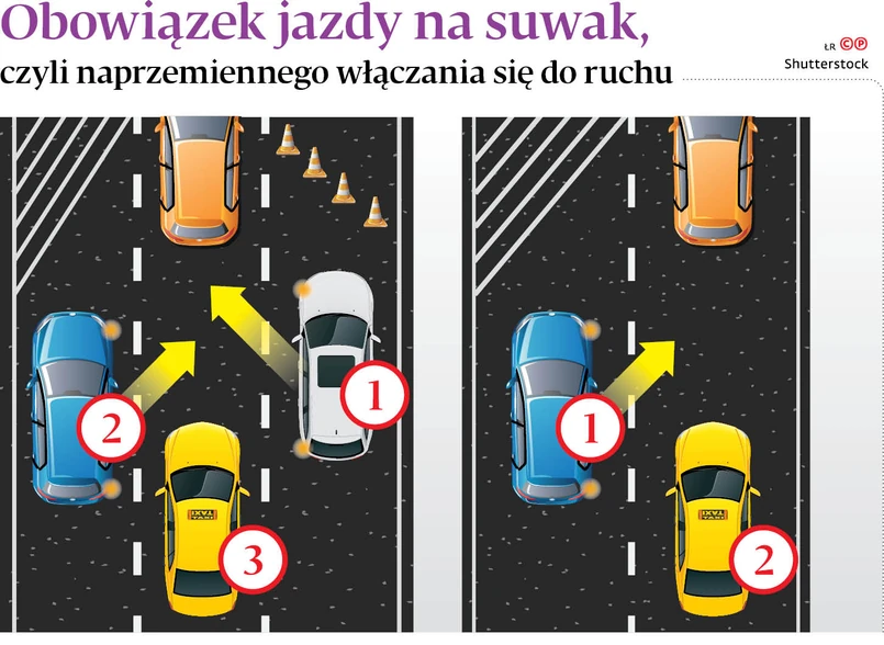 Przy okazji w projekcie usankcjonowano wreszcie zasady jazdy na suwak, dzięki czemu ruch w miejscach, w których następuje zwężenie dróg, będzie mógł się odbywać bardziej płynnie.