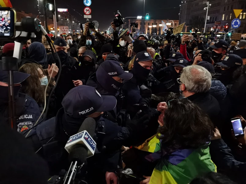W środę w Warszawie odbył się kolejny protest związany z orzeczeniem Trybunału Konstytucyjnego ws. przepisów antyaborcyjnych. Politycy Lewicy poinformowali w środę wieczorem, że policja "blokowała fizycznie" przejście do Sejmu wicemarszałka Czarzastego (Lewica) i że miał on "zostać pobity przez policję".
