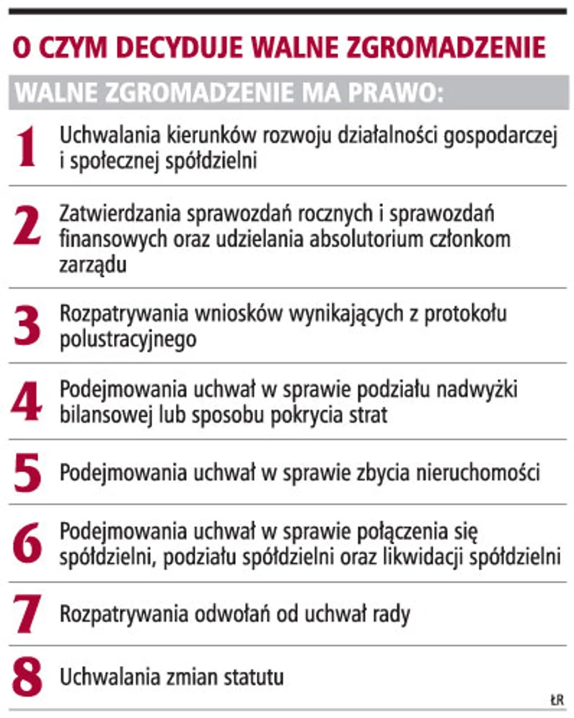 Mimo że nowelizacja ustawy o spółdzielniach mieszkaniowych obowiązuje od 31 lipca 2007 r., część spółdzielni do tej pory nie wprowadziła zmienionych zasad organizowania walnych zgromadzeń do swoich statutów. Oznacza to, że w tym roku odbędą się w nich zebrania grup członkowskich, a następnie zebrania przedstawicieli członków na starych zasadach.