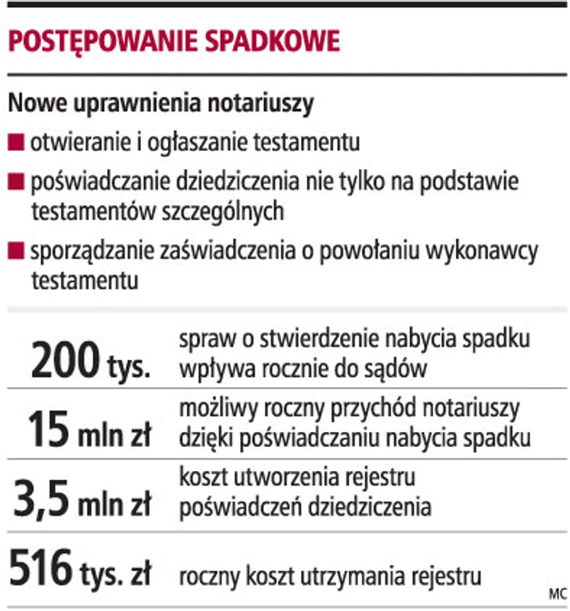 - Rejestr jest konieczny, gdyż jego brak umożliwiałby osobom w różnych okręgach dokonywanie takich samych czynności. Powinien jednak być kompletny, a w projektowanym kształcie nie obejmuje sadowych stwierdzeń nabycia spadków - uważa Wojciech Królikowski, notariusz z Dębicy.