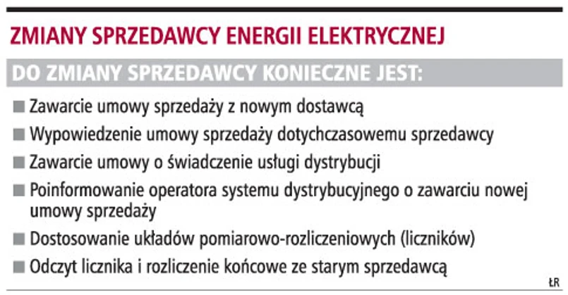 Operatorzy mają dziś skłonność do wydłużania procedur zmiany sprzedawcy oraz nakładania na konsumentów dodatkowych obowiązków. Wszystko to zniechęca do zmiany sprzedawcy. Resort gospodarki chce więc, aby jednakowa procedura zmiany sprzedawcy obowiązywała wszystkie przedsiębiorstwa energetyczne i była zagwarantowana w ustawie.