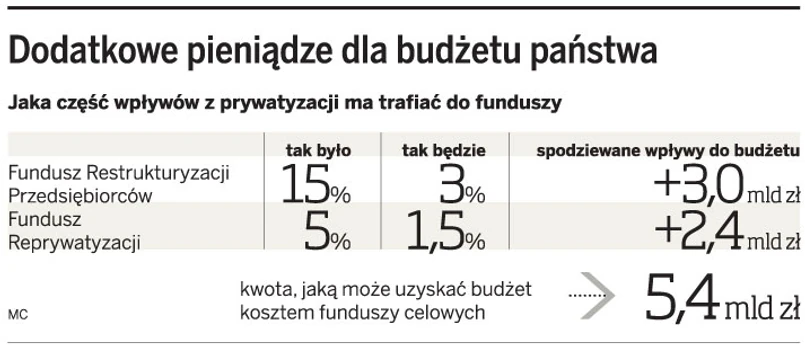 Rząd będzie ratował budżet pieniędzmi przeznaczonymi na restrukturyzację przedsiębiorstw i odszkodowania dla byłych właścicieli majątku państwowego.