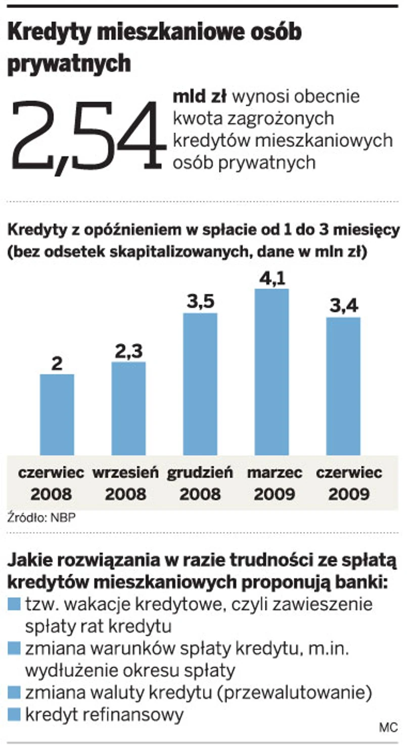 Pomimo że Polacy w najbliższym czasie mogą mieć problemy ze spłatą ponad 2,5 mld zł, to bankowcy nie są skłonni do dokonywania nerwowych ruchów. Ich zdaniem w Polsce nadal poziom spłacalności kredytów jest dość wysoki.