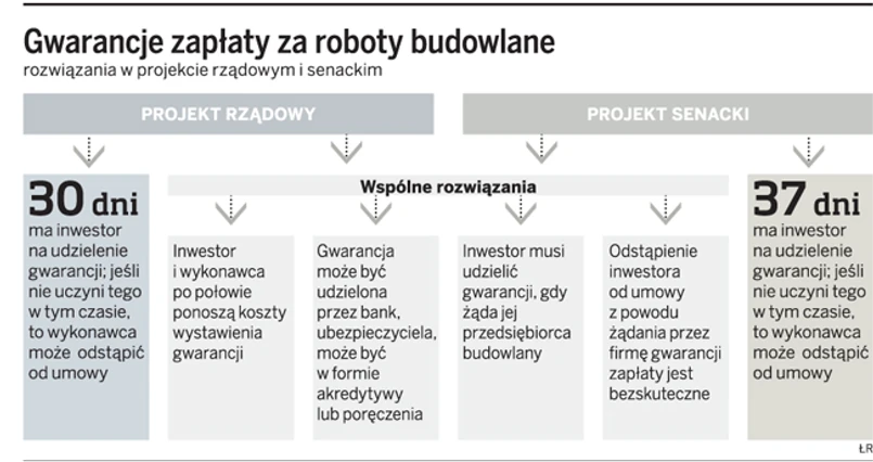 – Projekt rządowy określa także górną granicę gwarancji zapłaty jako sumę wynagrodzenia wynikającego z umowy, a także robót dodatkowych, zaakceptowanych przez inwestora na piśmie. Zrezygnowano więc z nieostrego pojęcia „wystarczającej gwarancji”, które przewiduje senacki projekt – tłumaczy Anna Prigan, radca prawny z kancelarii TGC Corporate Lawyers.