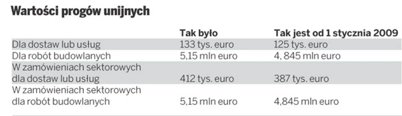 Na przełomie roku 2009 i 2010 do obrotu prawnego weszły trzy istotne akty prawne, które zmieniają radykalnie rynek zamówień publicznych. Są to dwie nowelizacje ustawy – Prawo zamówień publicznych – pierwsza z 5 listopada 2009 r. weszła w życie 22 grudnia 2009 r., druga z 2 grudnia 2009 r. zacznie obowiązywać od 29 stycznia 2010 r. Oprócz tego od 1 stycznia weszło w życie rozporządzenie Komisji Europejskiej zmieniające obowiązujące od dwóch lat progi unijne, które warunkują dokonanie szeregu czynności w postępowaniach o udzielenie zamówienia publicznego.