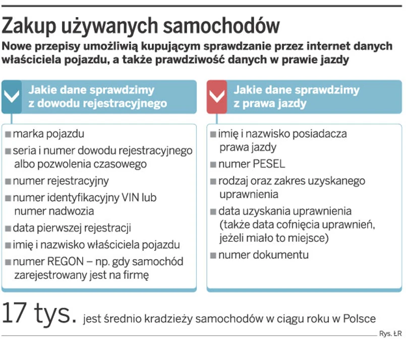– Możliwość weryfikacji danych będzie bardzo dużym ułatwieniem dla kupujących pojazd od innej osoby. W tej chwili sprawdzenie prawdziwości danych z dowodu rejestracyjnego jest trudne i trzeba się nachodzić – ocenia dr Ryszard Stefański z Wyższej Szkoły Handlu i Prawa, ekspert od ruchu drogowego.