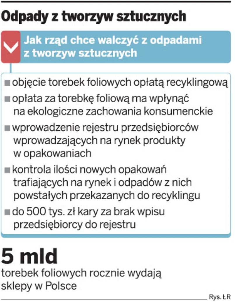 – Sklepy już obecnie pobierają opłaty za wydawane torebki. Jednak takie postępowanie powoduje, że z opakowań tych nie rozliczają się w ramach obowiązków określonych przepisami ustawy o obowiązkach przedsiębiorców w zakresie gospodarowania niektórymi odpadami oraz o opłacie produktowej – tłumaczy Magdalena Sikorska, rzecznik Ministerstwa Środowiska. Dodaje, że torebki foliowe są opakowaniami, które zgodnie z Dyrektywą 94/62/WE w sprawie opakowań i odpadów opakowaniowych powinny podlegać, tak jak pozostałe opakowania, regulacjom prawnym w zakresie odzysku i recyklingu odpadów opakowaniowych.