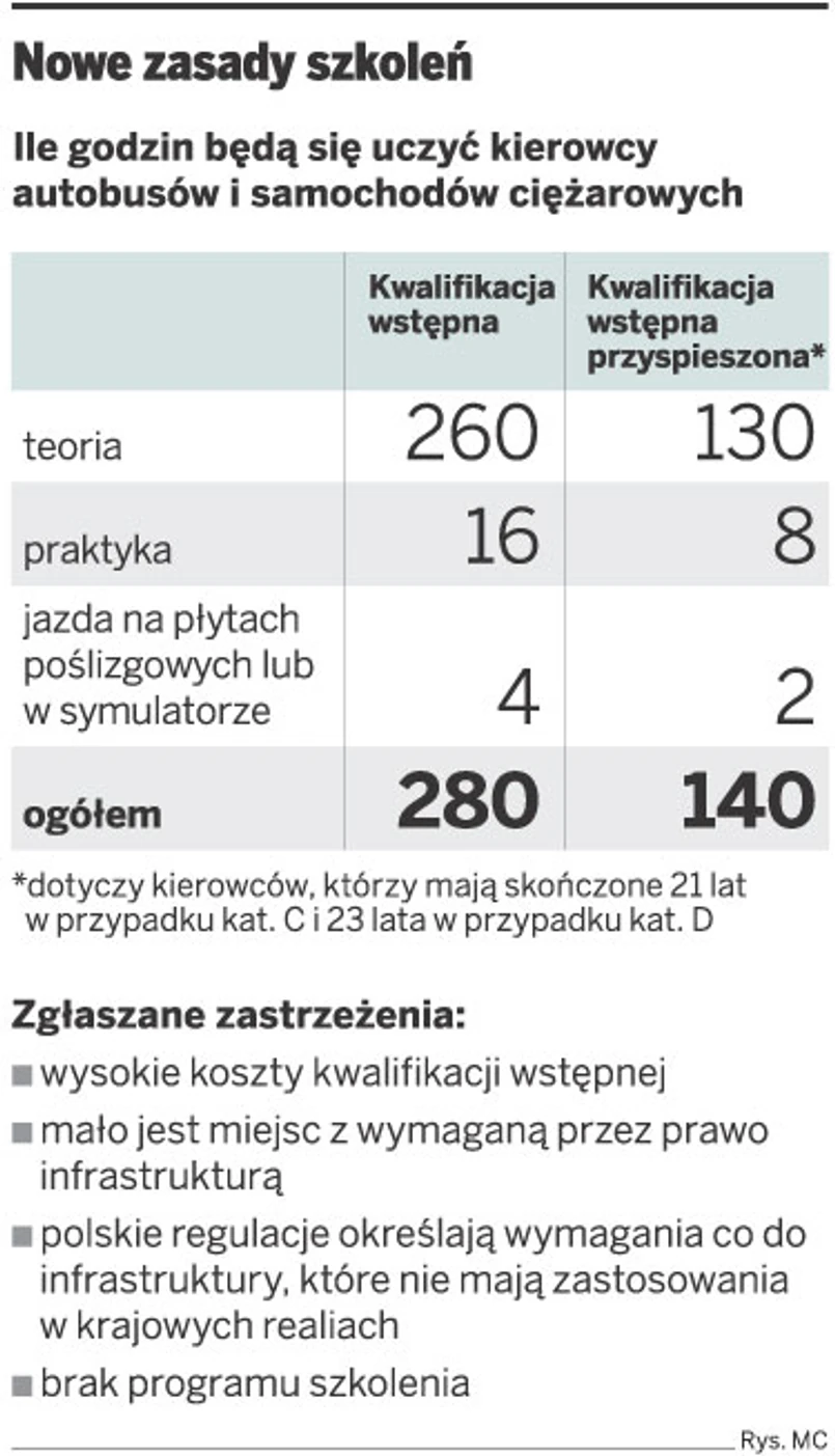 Wprowadzenie do polskich przepisów wymagań związanych z obowiązkiem ukończenia kwalifikacji wstępnej zamknęło wielu osobom drogę do wykonywania zawodu kierowcy. Obejmuje ona kierowców autobusów, którzy prawo jazdy na ten pojazd uzyskali po 10 września 2008 r., i kierowców ciężarówek, którzy prawo jazdy zdobyli po 10 września 2009 r. Barierą dla wielu osób okazały się nie tylko wysokie koszty szkolenia, ale i czas jego trwania.