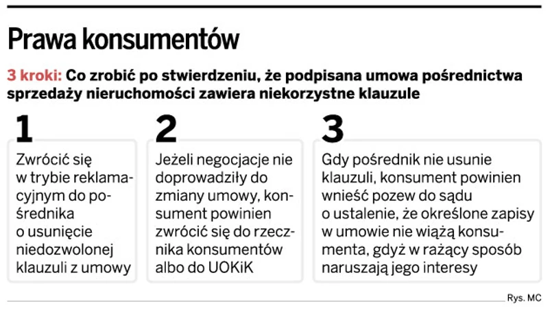 Trudna sytuacja na rynku nieruchomości i prawie dwa razy dłuższy niż przed kryzysem średni okres oczekiwania na sprzedaż mieszkania, domu czy działki powodują, że pośrednicy nieruchomości na wszelkie sposoby próbują walczyć o klientów. Kiedy już ich znajdą, przedkładają im do podpisania umowy, które gwarantują im wysokie zyski z danej transakcji. W praktyce okazuje się jednak, że bardzo często działania pośredników są niezgodne z prawem.