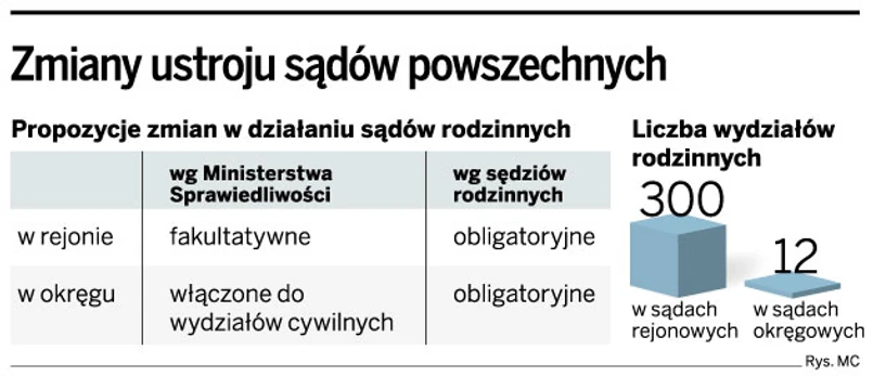 Już dziś zresztą podejmowane są próby likwidacji sądów rodzinnych na poziomie okręgów. Stowarzyszenie Sędziów Sądów Rodzinnych stoczyło prawdziwą batalię o wydział rodzinny w Sądzie Okręgowym w Lublinie. Próbowano też zlikwidować wydziały rodzinne w innych sądach okręgowych.