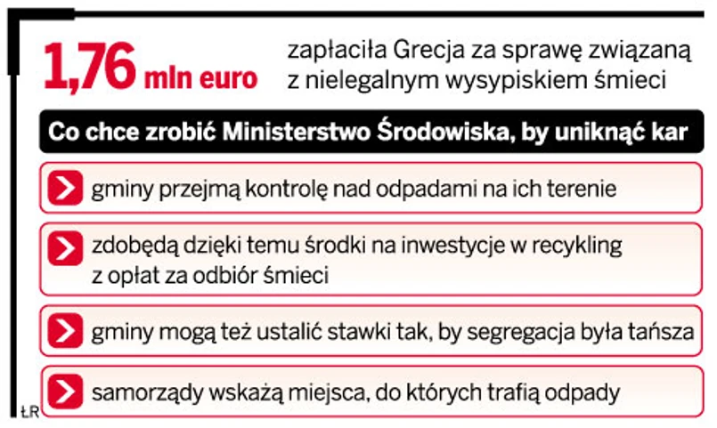 Za opóźnienia resort wini firmy zajmujące się gospodarką odpadami. Mają one kontrolę nad śmieciami odbieranymi od mieszkańców. Decydują, czy trafią do recyklingu, czy na składowiska. Najczęściej wybierane jest to drugie rozwiązanie. Dlatego resort chce zmienić prawo, by gmina mogła przejąć kontrolę nad odpadami. Wówczas samorządy mogłyby same decydować, gdzie trafią odpady. Za pobrane opłaty miałyby powstać zakłady utylizacji śmieci.