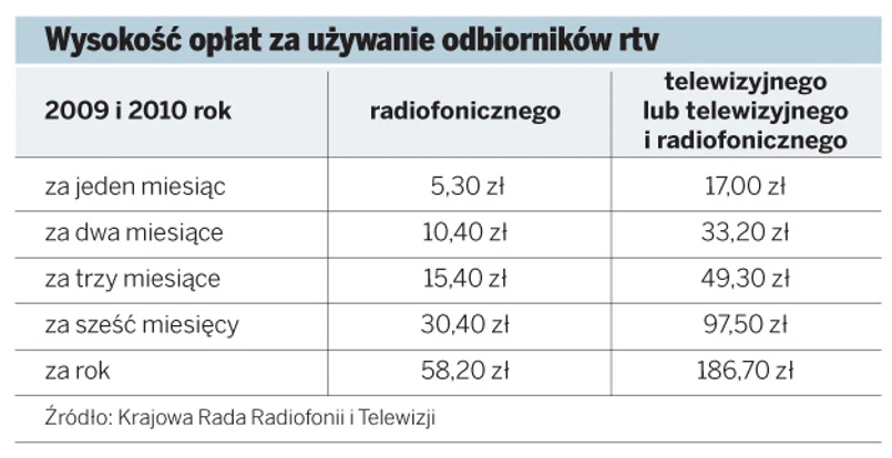 Od 2011 roku nieznacznie wzrosną stawki opłat abonamentowych. Za używanie odbiornika radiofonicznego i telewizyjnego opłata za jeden miesiąc wyniesie 17,15 zł, a za rok – 188,30 zł. W 2010 r. jest to odpowiednio 17 zł i 186,70 zł.