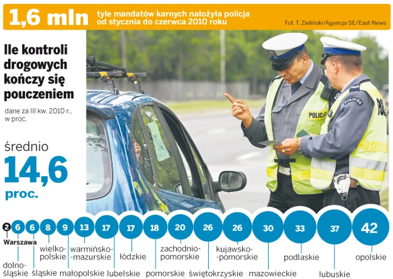 Jeśli popełnić wykroczenie drogowe, to tylko na drogach Opolszczyzny lub województwa lubuskiego. Tam jest największa szansa, że policjant, zamiast karać nas mandatem, poprzestanie na pouczeniu. Komenda Główna zapowiada jednak zmiany: kierowcy wszędzie mają być równie surowo traktowani.