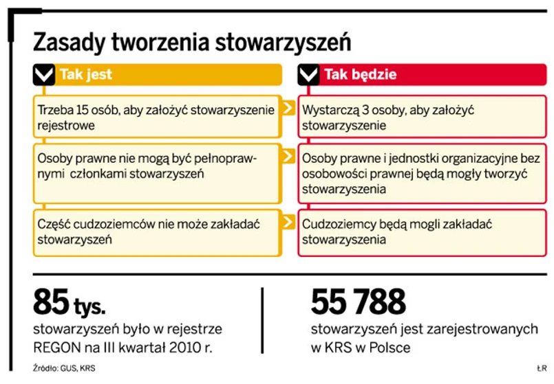 – Wprowadzamy też nowe rozwiązanie – stowarzyszenie w organizacji – wzorowane na regulacjach dotyczących spółek. Dzięki temu nawet gdy trwa procedura rejestracji, stowarzyszenie będzie mogło natychmiast działać – wyjaśnia Łukasz Abgarowicz, senator PO, który przygotował projekt nowej ustawy o zrzeszeniach.