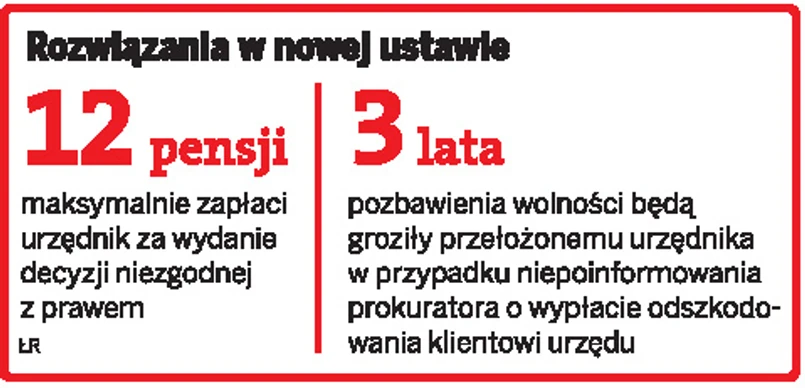 W razie przyznania interesantowi odszkodowania szef urzędu będzie musiał w ciągu 14 dni przesłać prokuraturze okręgowej odpis wyroku wraz z aktami sprawy i wnioskiem o wszczęcie postępowania wyjaśniającego. Zadaniem prokuratora będzie ustalenie, który urzędnik dopuścił się rażącego naruszenia prawa. Jeżeli stwierdzi, który funkcjonariusz popełnił błąd, wytacza mu sprawę cywilną.