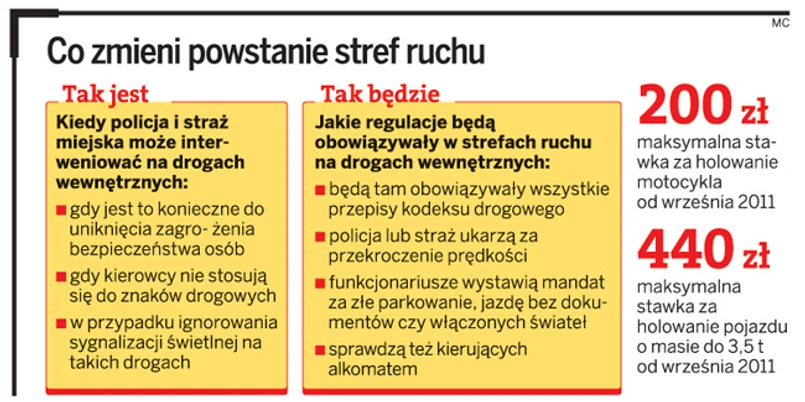 Zgodnie z przepisami zarządca drogi wewnętrznej, np. parkingu, może ustanowić taką strefę ruchu, w której policja i straż miejska mogą w pełni egzekwować wszystkie przepisy ruchu drogowego, a nie tylko w zakresie samych znaków. Problem w tym, że ciągle nie ma gotowych rozporządzeń, które określiłyby wzór takiego znaku i zasady jego umieszczania.