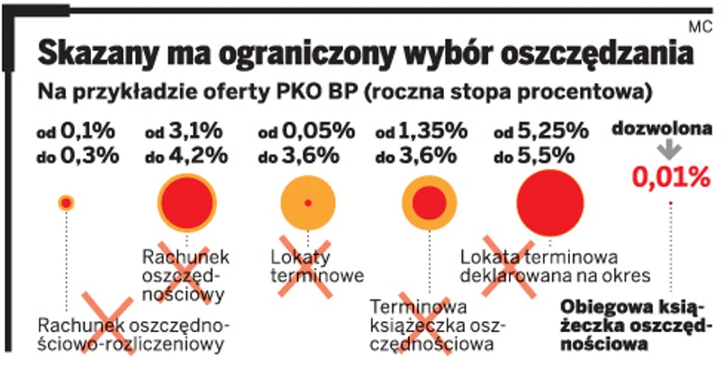– Zakłady karne mają swobodę co do wyboru banku prowadzącego książeczki oszczędnościowe osadzonych, gdyż żaden przepis nie wskazuje konkretnego podmiotu, z którym ma być zawarte porozumienie – wyjaśnia ppłk Sałapa. Usługę lokowania środków pieniężnych na książeczkach oszczędnościowych oferują tylko PKO BP oraz banki spółdzielcze. Obecnie wysokość oprocentowania wkładów na książeczkach oszczędnościowych obiegowych w PKO BP wynosi 0,01 proc. w skali roku, natomiast na terminowych książeczkach oszczędnościowych uzależniona jest od kwoty wkładu terminowego.