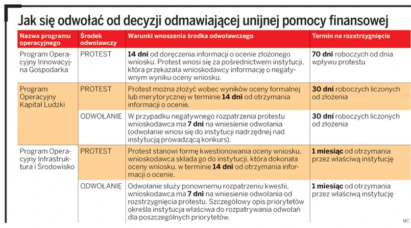 Z drugiej strony wprowadzenie powszechnego prawa do odwołań może spowodować znaczne opóźnienia w procedurze aplikacyjnej. Podobne dylematy towarzyszą również procedurze udzielania zamówień publicznych, gdzie środki odwoławcze często przedłużają postępowanie, z drugiej jednak strony służą one zachowaniu przejrzystości i konkurencyjności. Natomiast jednoznacznie sformułowana procedura odwoławcza powinna motywować urzędników odpowiedzialnych za redystrybucję środków unijnych do dobrej pracy i rzetelnej oceny składanych wniosków. Należałoby natomiast zastanowić się, czy instytucje prowadzące konkursy w ramach PO Innowacyjna Gospodarka rzeczywiście potrzebują aż 70 dni roboczych na rozstrzygnięcie protestu wnioskodawców.