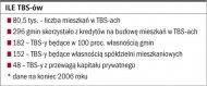 - W latach 1996 - 2006 na cel budowy TBS-ów udzielono kredytów na kwotę 5 mln 727 tys. zł. Kwota ta pozwoliła na skredytowanie 80,5 tys. mieszkań. Zasoby społecznych