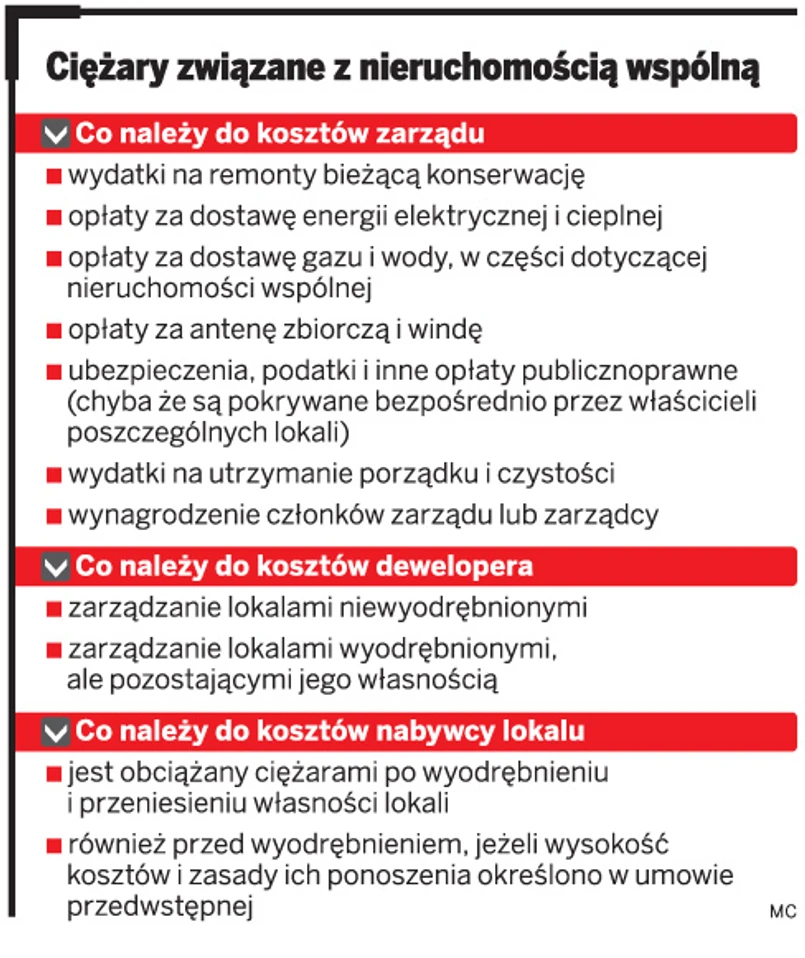 Wraz z przeniesieniem własności na nabywcę przechodzą korzyści i ciężary związane z utrzymaniem lokalu i zarządem nieruchomością wspólną.