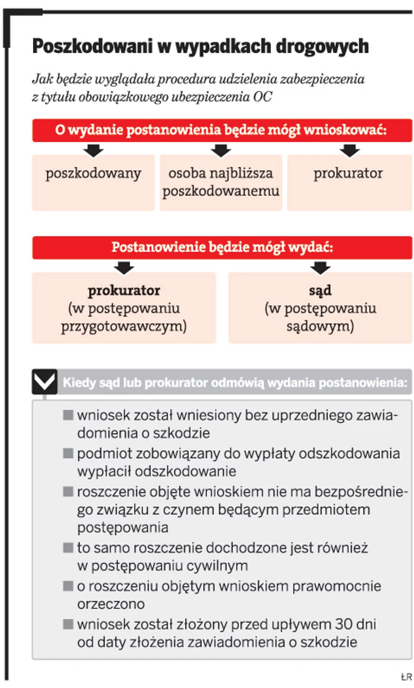 Poszkodowany, który będzie dysponować postanowieniem w przedmiocie zabezpieczenia roszczeń z tytułu ubezpieczenia odpowiedzialności cywilnej, otrzyma od zakładu ubezpieczeń wypłatę z tytułu zaliczki na poczet odszkodowania, bez konieczności wnoszenia sprawy do sądu cywilnego.