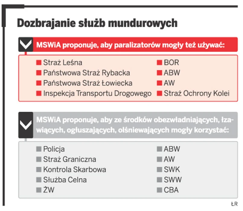 Resort chce także upowszechnić stosowanie paralizatorów. Dziś mogą je używać m.in.