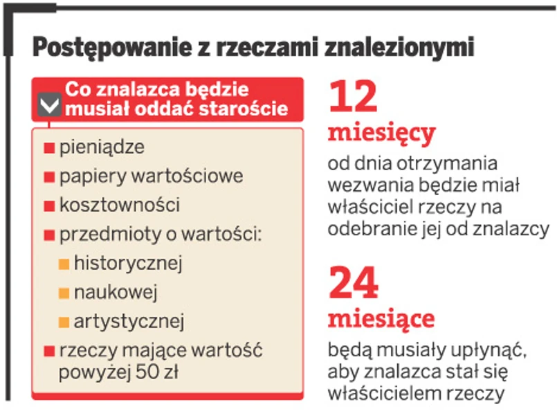 Osoba, która znajdzie rzecz, będzie musiała ją oddać staroście, o ile jej wartość będzie przekraczać 50 zł.