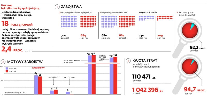 Sukcesem Policji jest zwiększenie wykrywalności sprawców zabójstw - o 2,4 procent w porównaniu z rokiem 2010.