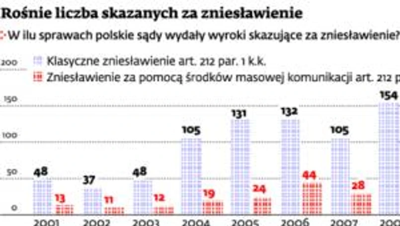 Wiele polskich spraw o zniesławienie znajduje swój finał w Strasburgu. Monitorowaniem ich przebiegu nie zajmuje się resort sprawiedliwości, tylko spraw zagranicznych. W ciągu ostatnich pięciu lat Europejski Trybunał Praw Człowieka (ETPC) wydał cztery wyroki, w których stwierdził naruszenie prawa międzynarodowego z powodu wyroków skazujących z art. 212 k.k. W 2012 r. stwierdzeniem naruszenia zakończyły się dwie sprawy – Jucha i Żak oraz Lewandowska-Malec. Wcześniej polskie sądy naruszyły konwencję w sprawie Kurłowicz i Długołęcki.