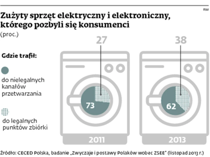 Duża część zużytego sprzętu nie jest legalnie przetwarzana
