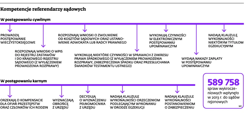 Na to, że pozycja ustrojowa referendarzy jest silniejsza niż funkcjonariuszy nakładających grzywny w postępowaniu mandatowym, zwraca uwagę również MS. Resort przypomina, że referendarze są niezależni co do treści wydawanych orzeczeń, a ponadto muszą spełnić większość wymagań stawianych kandydatom na sędziów i ukończyć odpowiednią aplikację.