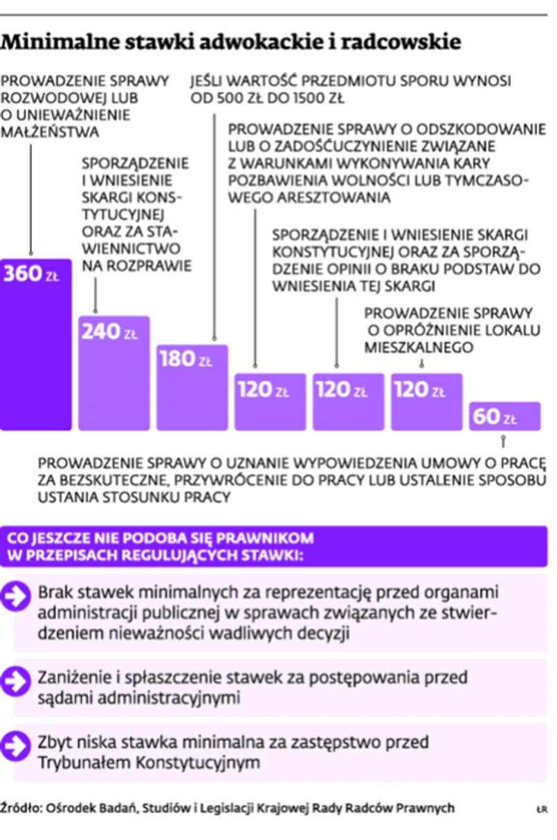 Przypomnijmy, że dziś wysokość stawek adwokackich, jak i radcowskich regulują obowiązujące od 2002 r., dotychczas nienowelizowane, niemalże bliźniacze rozporządzenia w sprawie opłat za dokonywane przez nich czynności. Nie ma jednak