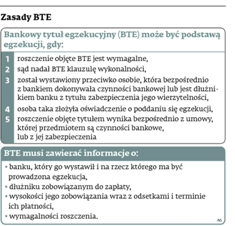 – Bank może wystawić BTE przeciwko spadkobiercy dłużnika, skoro jest on jego następcą prawnym ze wszystkimi tego konsekwencjami. Złożenie oświadczenia o poddaniu się egzekucji kształtuje sytuację prawną dłużnika, który rezygnuje ze zbadania sprawy przez sąd, oraz banku, który zostaje uprawniony do wszczęcia egzekucji bez wystąpienia na drogę sądową – wyjaśnia mecenas Wróblewska.