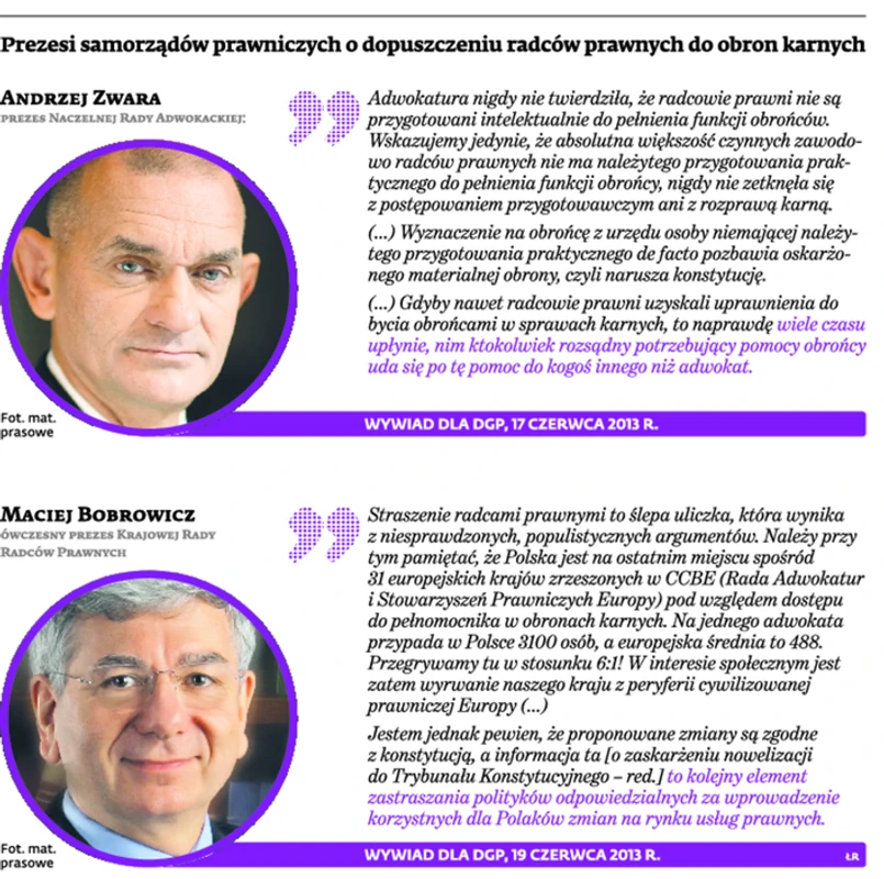 – Nie jest kwestią istotną, że radcy prawni nie są przygotowani do sprawowania obron, ponieważ w tej chwili mają w programie aplikacji prawo karne i mogą się tego nauczyć. Istotne jest to, że samorząd radcowski nie jest przygotowany do sprawowania pieczy nad etyką obrończą – akcentuje mecenas Majewski.