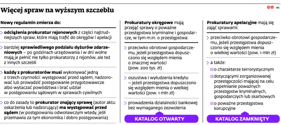 – Taka interpretacja respektuje zasadę niezależności. Pozytywnie ocenić należy również wyraźną wskazówkę, iż jeśli jedno postępowanie obejmuje swoim zakresem przedmiotowym kilka kwalifikacji prawnych, w tym należącą do katalogu określonego w paragrafie 9 rozporządzenia (patrz: grafika), postępowanie w całości prowadzi prokuratura okręgowa – dodaje szef związkowców.