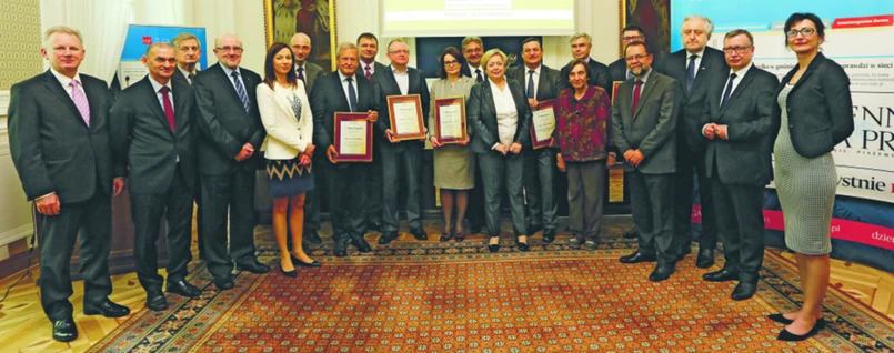 prawa mówił także w nagranym wystąpieniu laureat Złotego Paragrafu przyznawanego za działania na rzecz prawa i gospodarki – prof. Jerzy Buzek. Podkreślał, że aby zbudować silną Polskę, musimy zapanować nad prawem, którego jakość często pozostawia wiele do życzenia. Laureatom pogratulował także Radosław Sikorski, marszałek Sejmu.