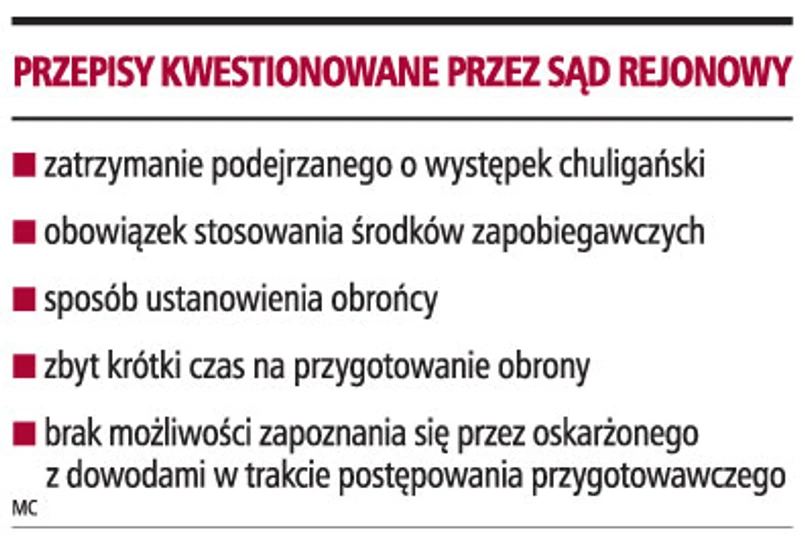 - Ustawodawca, wyłączając stosowanie ogólnych przepisów kodeksu postępowania karnego, przekroczył granicę konieczności i celowości wprowadzenia regulacji adekwatnej do zapewnienia porządku publicznego. Postępowanie przyspieszone jest szczególnym, ale nie specjalnym trybem postępowania karnego i powinny mieć w nim zastosowanie ogólne gwarancje dla praw oskarżonego - podkreślał sędzia Marek Mazurkiewicz.