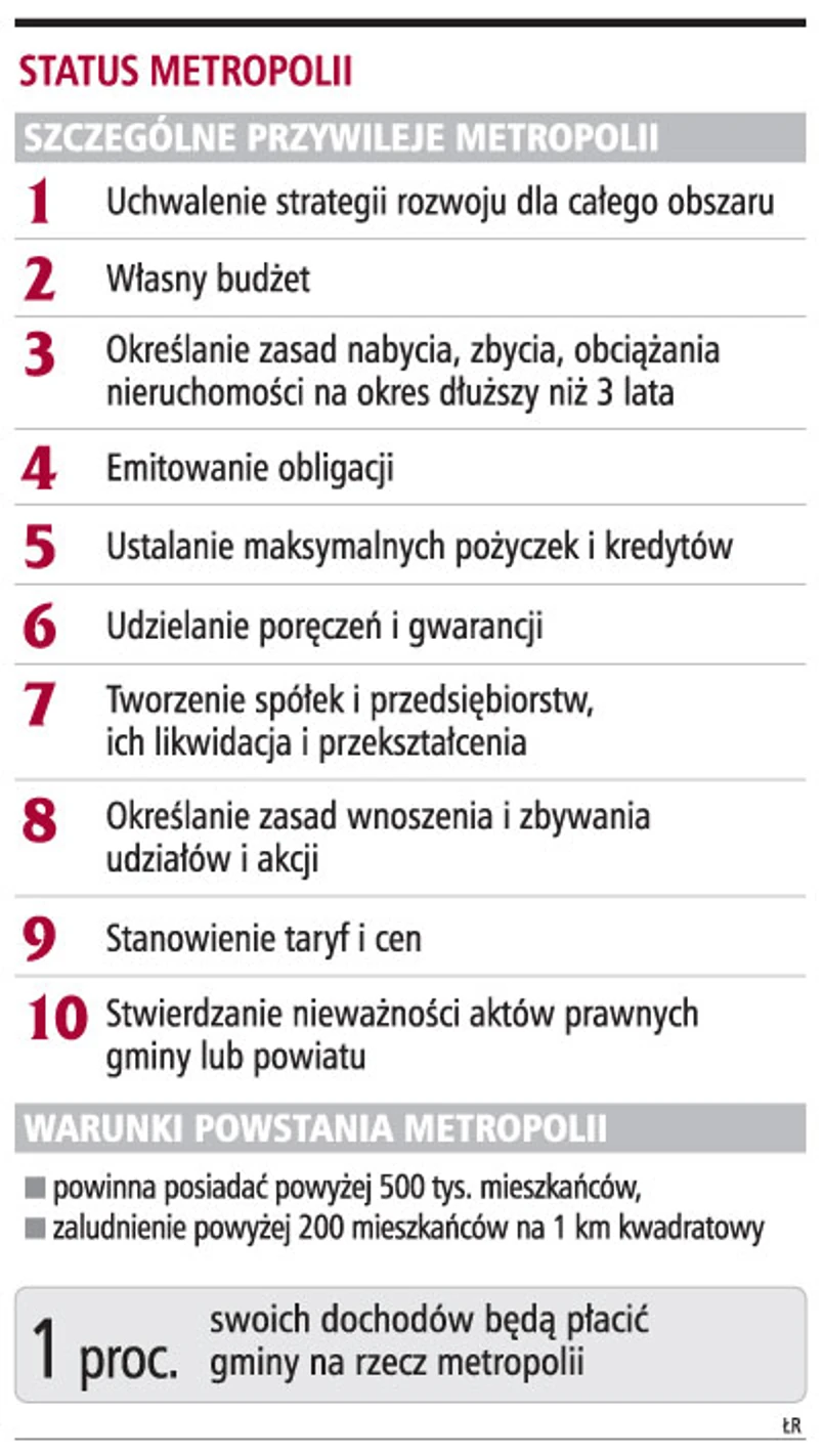 Wątpliwości budzi zaś powołanie na mocy ustawy tylko dwóch zespołów metropolitalnych - warszawskiego i górnośląskiego.