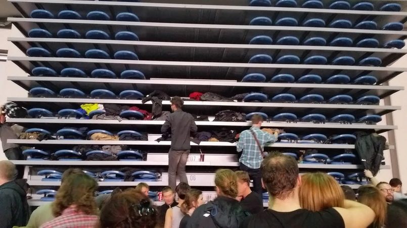 Nerwowa atmosfera, zarzuty pod adresem organizatora, a także niewybredne komentarze skierowane w stronę pracowników szatni znacząco psuły atmosferę zabawy. Tym bardziej, że część osób zrobiła sobie prowizoryczną szatnię zostawiając rzeczy prywatne na złożonej trybunie. Kierując się ich bezpieczeństwem nie zwracali uwagi na swoje i wdrapywali się na wysokość 2 metrów.