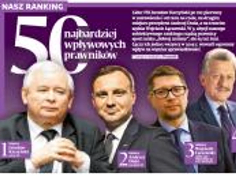 Zdziwienie, szok, a może radość? Bardzo ciekawa jestem Państwa reakcji na nasz tegoroczny ranking wpływowych prawników. Czy były związane raczej z emocjami negatywnymi jak oburzenie czy pozytywnymi w rodzaju zadowolenia? W końcu podium z jednej strony jest oczywiste, ale z drugiej może zupełnie zaskakiwać. Bo nazwiska, które się tu znalazły, były i są związane z ogromną debatą, jaka się toczyła w ostatnich miesiącach ubiegłego roku i wciąż trwa ze względu na działania wokół polskiego państwa i prawa. Dwie pierwsze osoby to prawnicy spod znaku „dobrej zmiany”. Weźmy jedynkę, czyli Jarosława Kaczyńskiego. W ciągu pięciu lat publikowania naszego zestawienia nie zmieniło się jego wykształcenie. Był i jest prawnikiem. Ale pierwszy raz zagościł na liście i to od razu na miejscu pierwszym. W dotychczasowych czterech edycjach rankingu nie mógł się w nim znaleźć, bo choć w tym czasie liderował Prawu i Sprawiedliwości, nie miał rzeczywistego wpływu na to, co się w krajowych instytucjach i regulacjach działo. To się zmieniło w 2015 r. i to mimo że faktycznie nie zaczął pełnić żadnych publicznych funkcji. Nikt jednak nie ma wątpliwości, że to on teraz rozdaje karty na polskiej scenie polityczno-państwowo-prawnej, a nasza rankingowa dwójka jest na jego usługach. Chciałabym napisać, że prezydent Andrzej Duda otrzymał tak wysoką pozycję ze względu na swoje fantastyczne osiągnięcia i „dobrą zmianę”, ale niestety nie mogę. Po prostu odsyłam Państwa do uzasadnienia redakcyjnej decyzji dotyczącej głowy państwa. Wojciech Łączewski, który zajął trzecie miejsce w zestawieniu, nie spodoba się prawnikom (i nieprawnikom również) związanym z „dobrą zmianą”. To w końcu on stoi za wyrokiem na Mariusza Kamińskiego, który tak mocno zamieszał w polityczno-prawnym tyglu. Na koniec, gwoli przypomnienia: piąty ranking wpływowych prawników był układany tak jak poprzednie, czyli według oceny dokonań osób z dyplomem wydziału prawa w 2015 r. I jak Państwo – mam nadzieję – pamiętają, są to oceny subiektywne, bo wystawienie not i przypisanie miejsc na liście należy wyłącznie do redakcji, niekierującej się w tym względzie wskaźnikami policzalnymi. To dlatego ranking co roku wywołuje kontrowersje. Nie inaczej będzie teraz. Zwłaszcza że to prawdziwa mieszanka prawników „dobrej zmiany” i spoza niej.