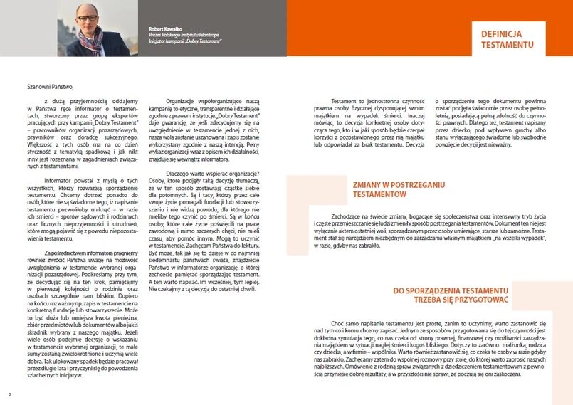 "Chcemy dotrzeć (...) do osób, które nie są świadome tego, iż napisanie testamentu pozwoliłoby uniknąć – w razie ich śmierci – sporów sądowych i rodzinnych oraz licznych nieprzyjemności i utrudnień, które mogą pojawić się z powodu niepozostawienia testamentu" - wskazują autorzy informatora.