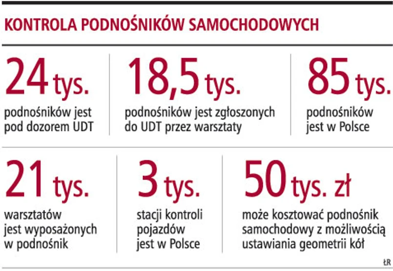 Urząd Dozoru Technicznego nadzoruje 24 tys. eksploatowanych w Polsce podnośników samochodowych. W Polsce samych warsztatów jest 21 tys. i większość z nich dysponuje co najmniej kilkoma podnośnikami. Tak więc duża część tych urządzeń nie jest zgłoszona do Urzędu Dozoru Technicznego. Tym samym nie są przeprowadzane ich przeglądy techniczne. Nie wiadomo więc, w jakim są one stanie.