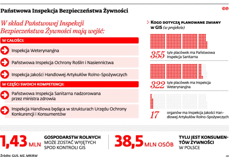 Póki ustawy o megainspekcji, która miałaby zacząć działać od 2017 r., nie ma, resort rolnictwa próbuje zmniejszyć rolę GIS w inny sposób. W osobnym projekcie zaproponował przekazanie nadzoru nad rolnikami w zakresie realizowanym obecnie przez GIS do Inspekcji Jakości Handlowej Artykułów Rolno-Spożywczych. I nie ma znaczenia, że ten organ do tej pory nie realizował takich zadań, nie ma też oddziałów powiatowych. To niepokoi m.in. Marka Balickiego, byłego ministra zdrowia.