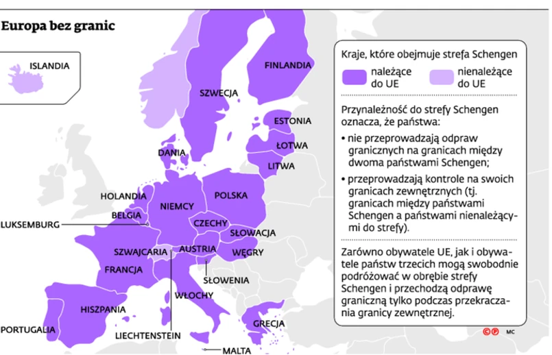 UE (z Ukrainą, Białorusią i Rosją) oraz wewnętrzne z państwami członkami strefy Schengen, czyli z Litwą, Słowacją, Czechami i Niemcami. Dla przekraczania granic zewnętrznych konieczne jest więc posiadanie paszportu i przejście kontroli granicznej. Również w ramach Schengen zniesienie kontroli granicznej nie oznacza automatycznie, że poszczególne państwa nie mogą ustanowić przepisów zobowiązujących do posiadania przy sobie określonych dokumentów. Tyle że Polska żadnych takich szczególnych regulacji nie wprowadziła.